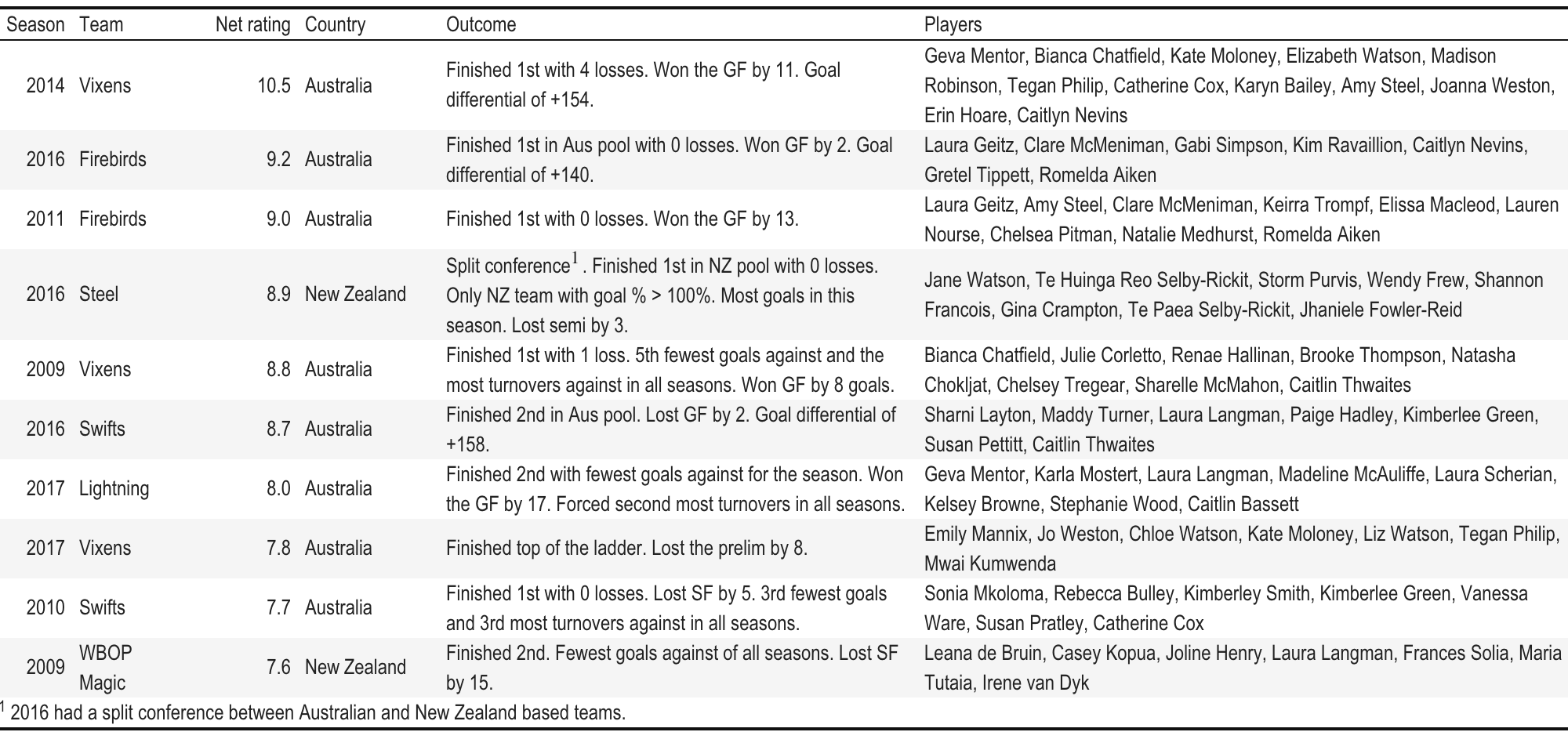 The table below shows the teams that had the highest net ratings between 2009 and 2021, with data courtesy of Champion Data.